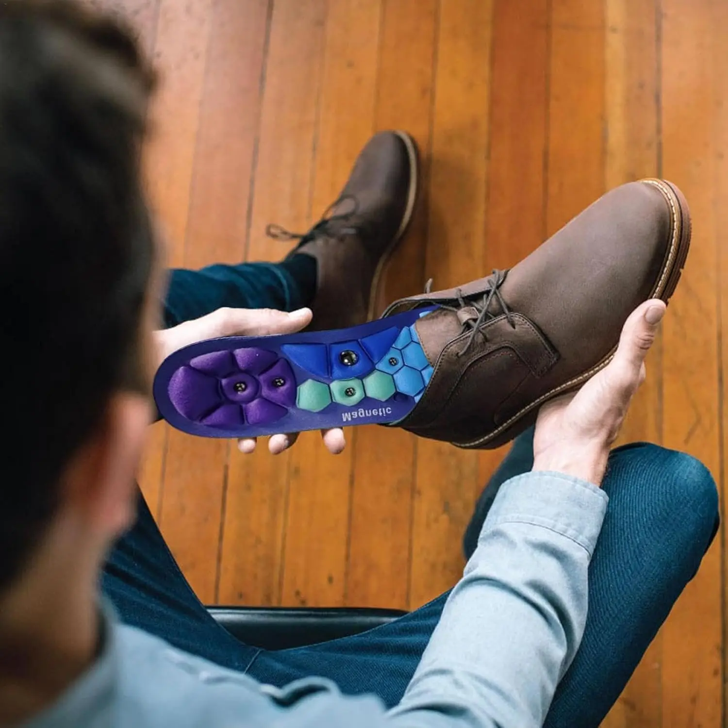 Don't let fatigue rule your day our magnetic acupressure insoles are here to ensure comfort and well-being at any time.Continuous Magnetic Therapy: Strategically placed magnets detect a relaxing massage throughout use.