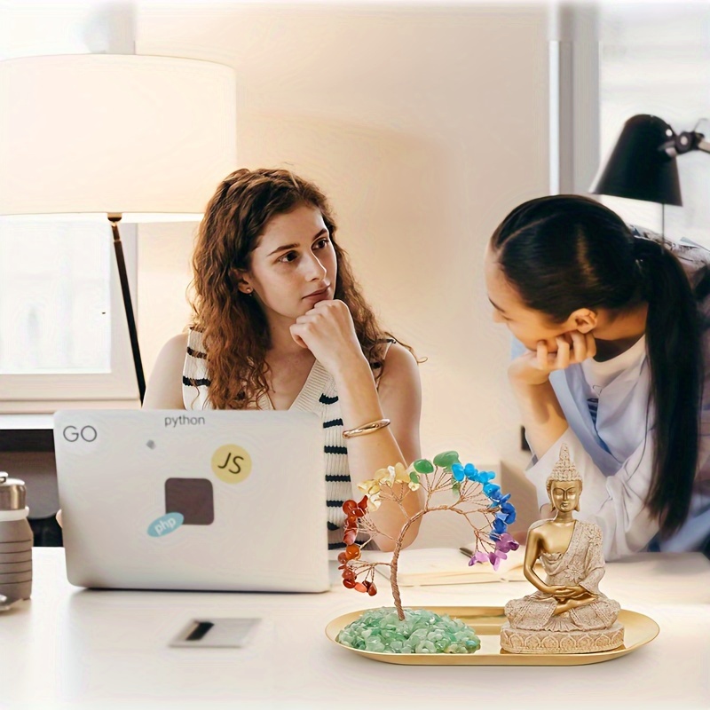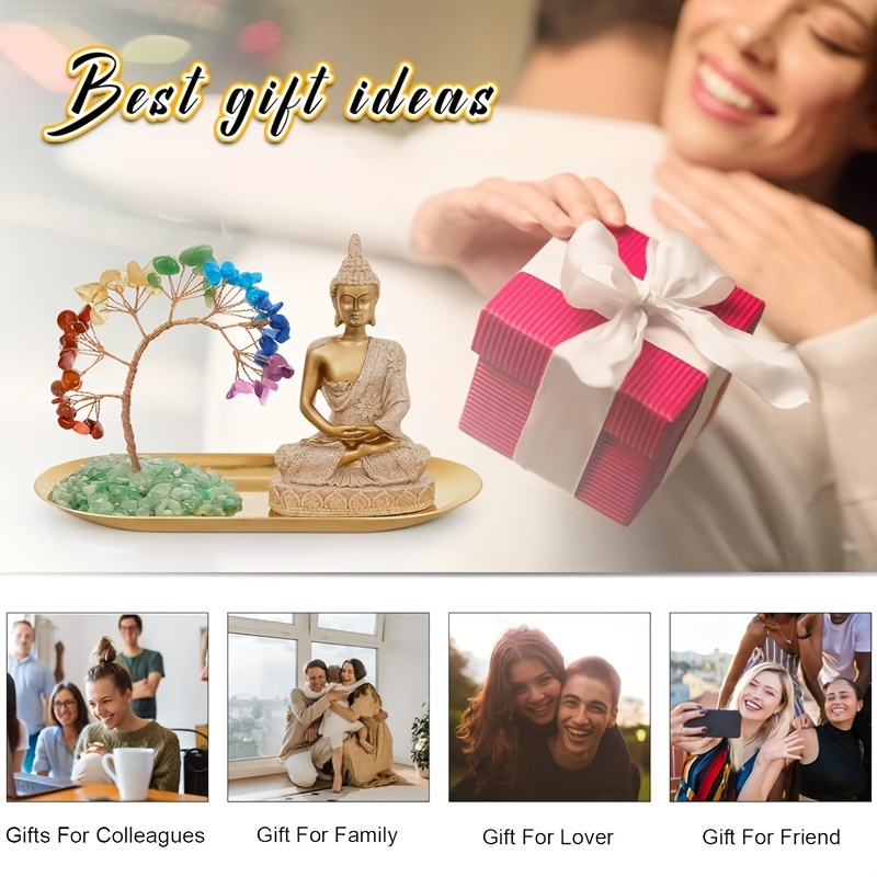 Chakra Crystal Tree and Buddha Statue Set Yoga Meditation Decor Money Tree and Buda Statue for Home Living Room Office Shelf Decor Buda Statues for Decoration Wealth and Luck